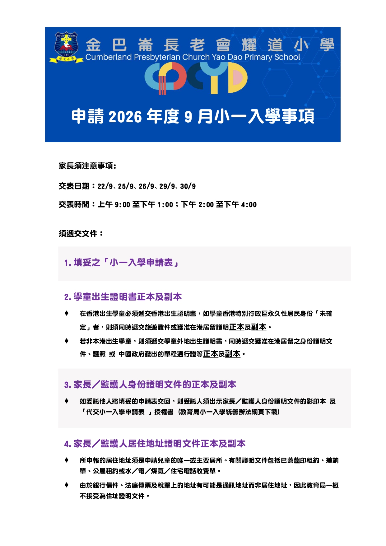 1. 網上報名: 學校簡介會 (網上報名) 家長可透過以上網址或掃描單張QR Code網上報名。