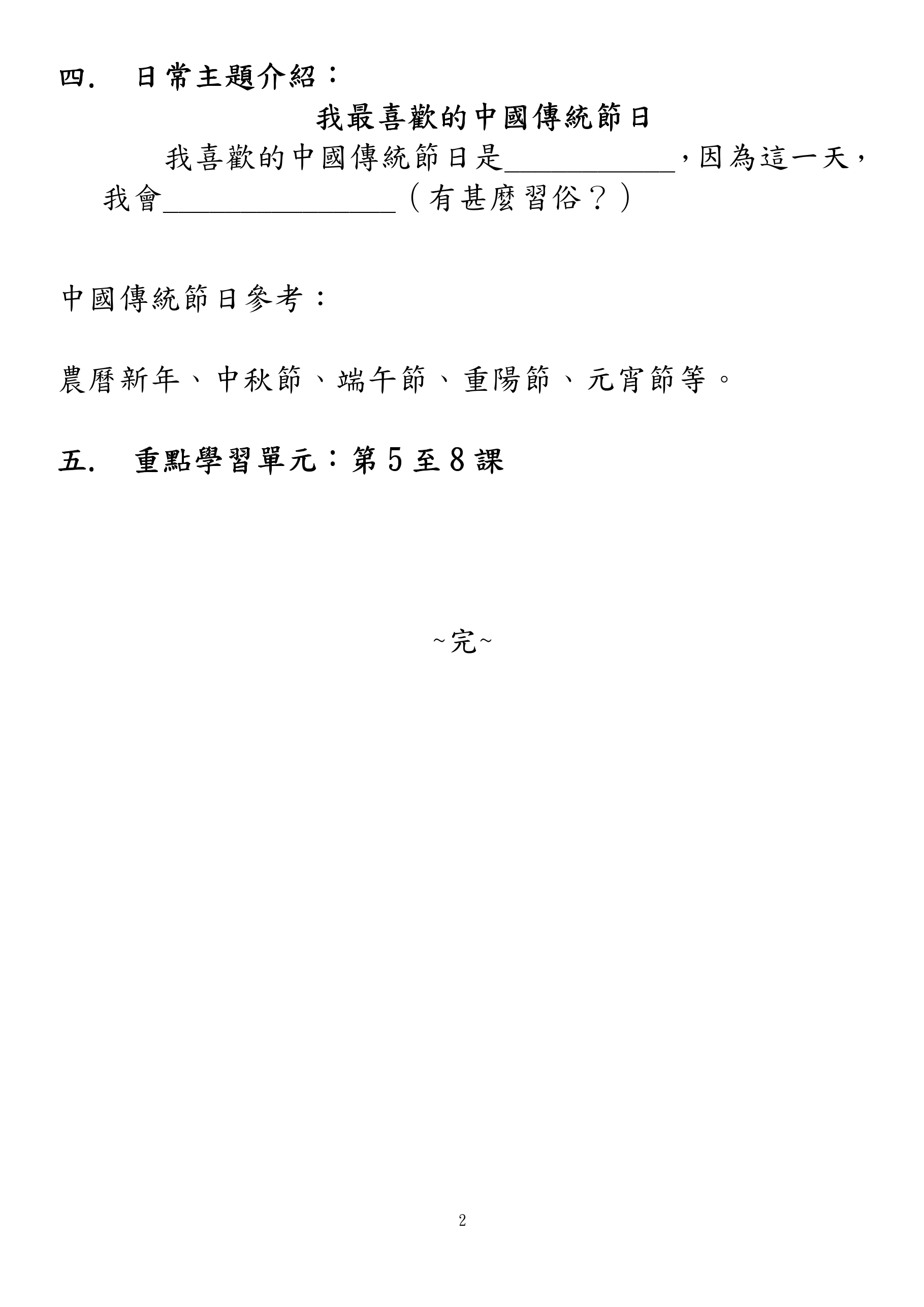 2025-2026 下學期小二普通話學習框架錄音